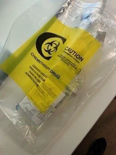 After labs, I typically met with my oncologist or nurse practitioner to go over the labs, and then head up to the infusion suite. Suite is a bit of a stretch. It was a tiny space with a recliner and a small chair, surrounded by a curtain. When you added the cold cap machine and my chemo bag, you could barely move in the space. A nurse came in and gave me my pre-meds, which consisted of a steroid and an anti-nausea medicine.